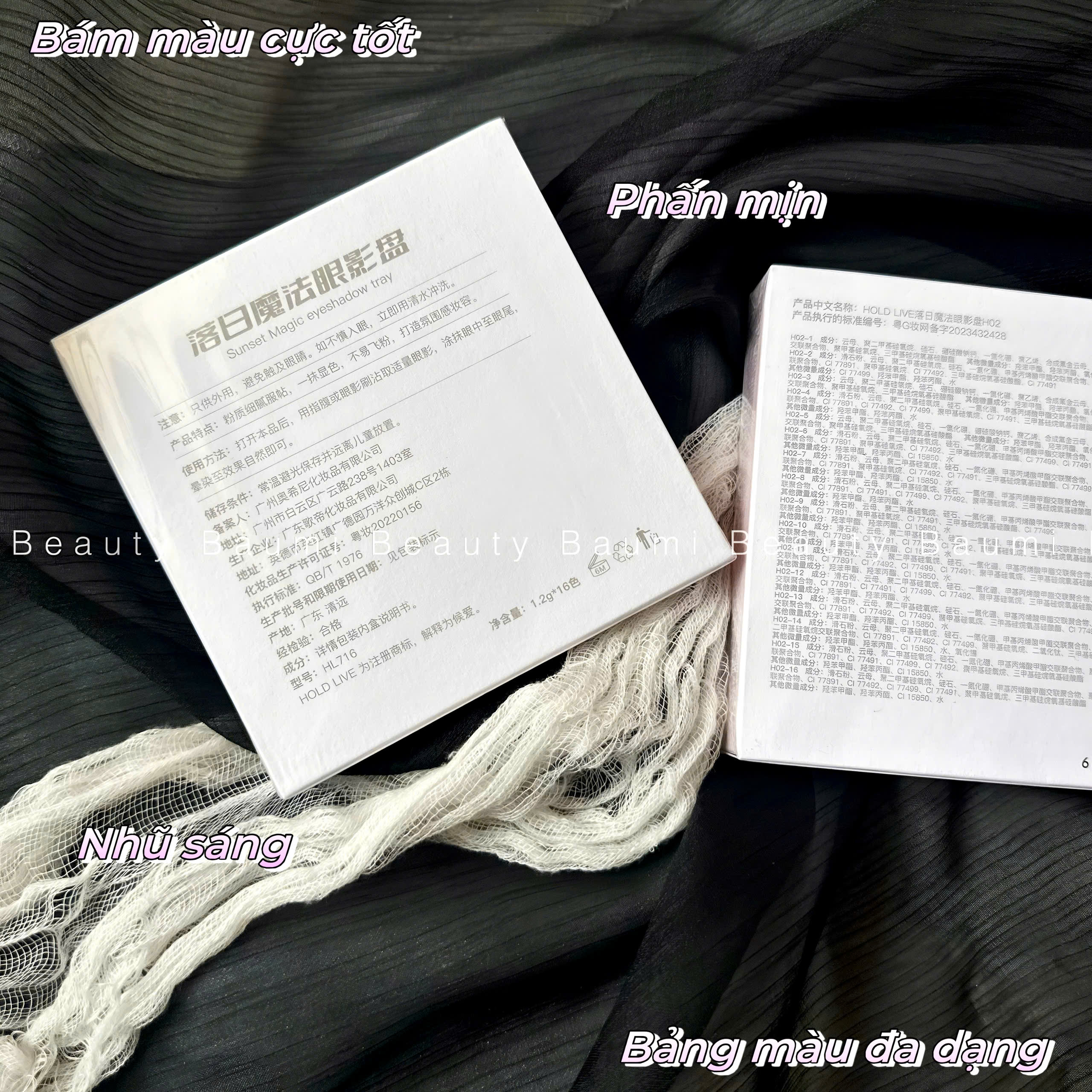 Đánh giá Bảng phấn mắt mịn lì, nhũ sáng 16 ô HOLD LIVE Sunset Magic Eyeshadow Tray #H02 : tone hồng tím – nâu lạnh