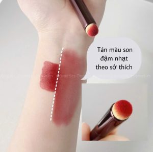➖ Lấy lượng son vừa đủ bằng cọ, kẻ viền môi trước rồi tán đều vào lòng môi