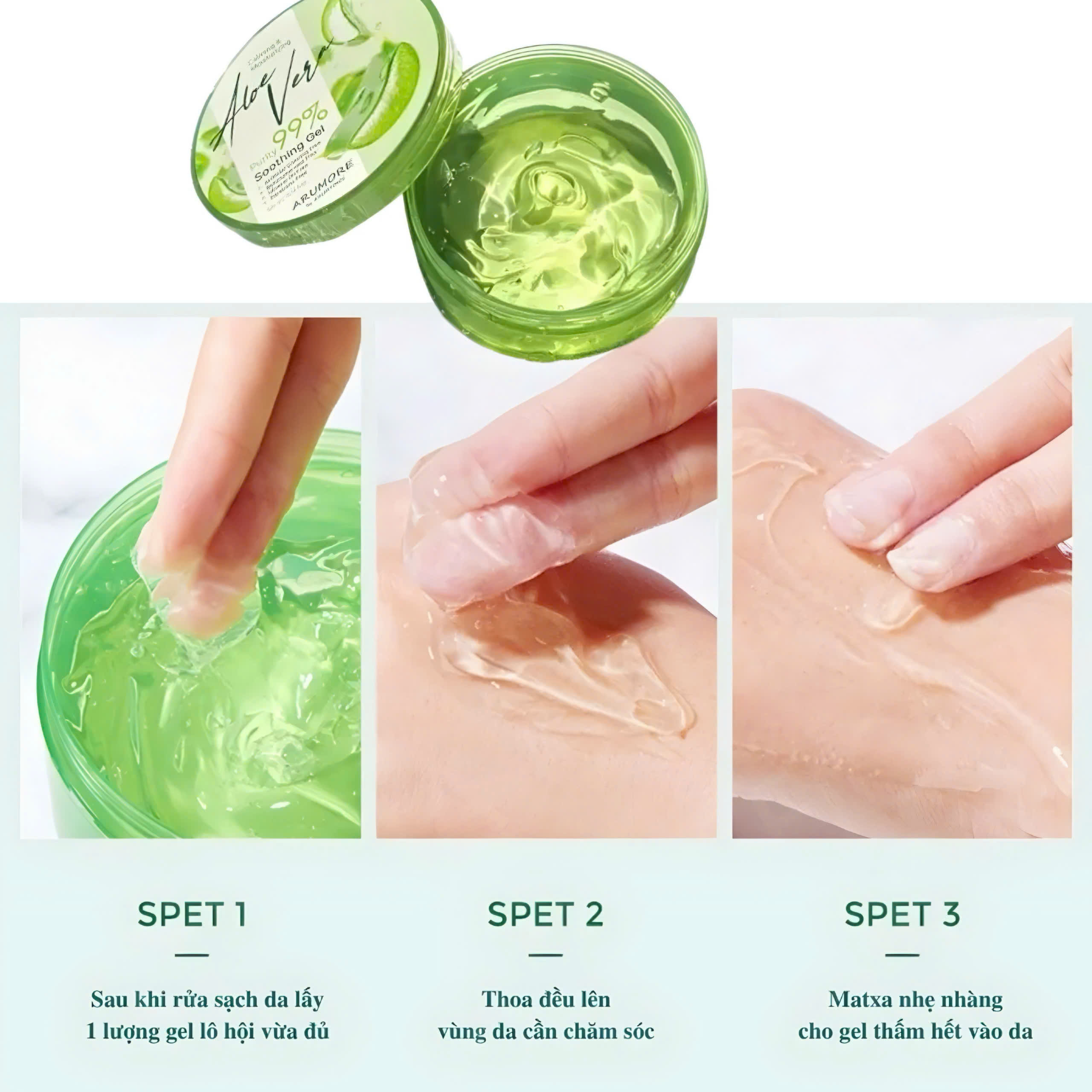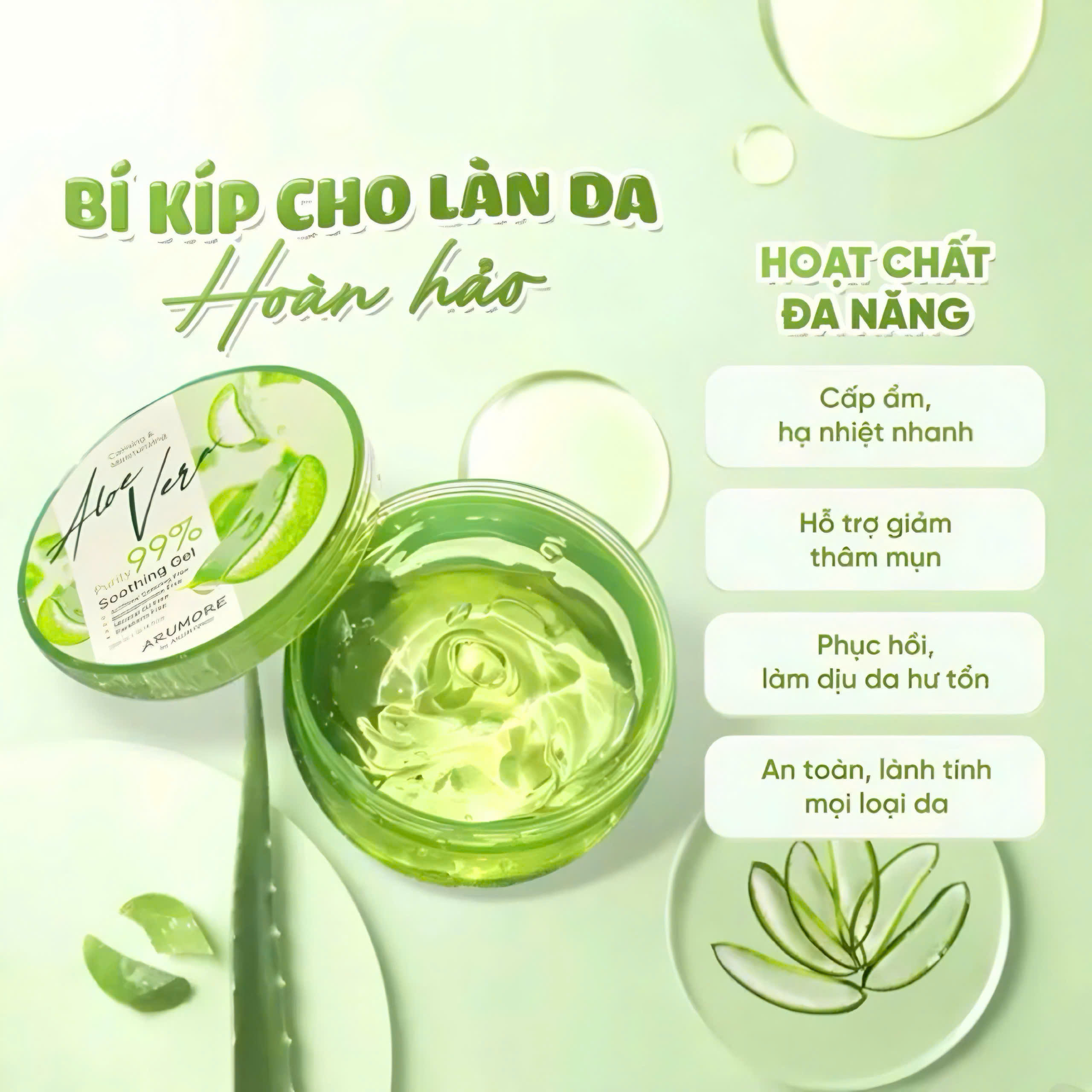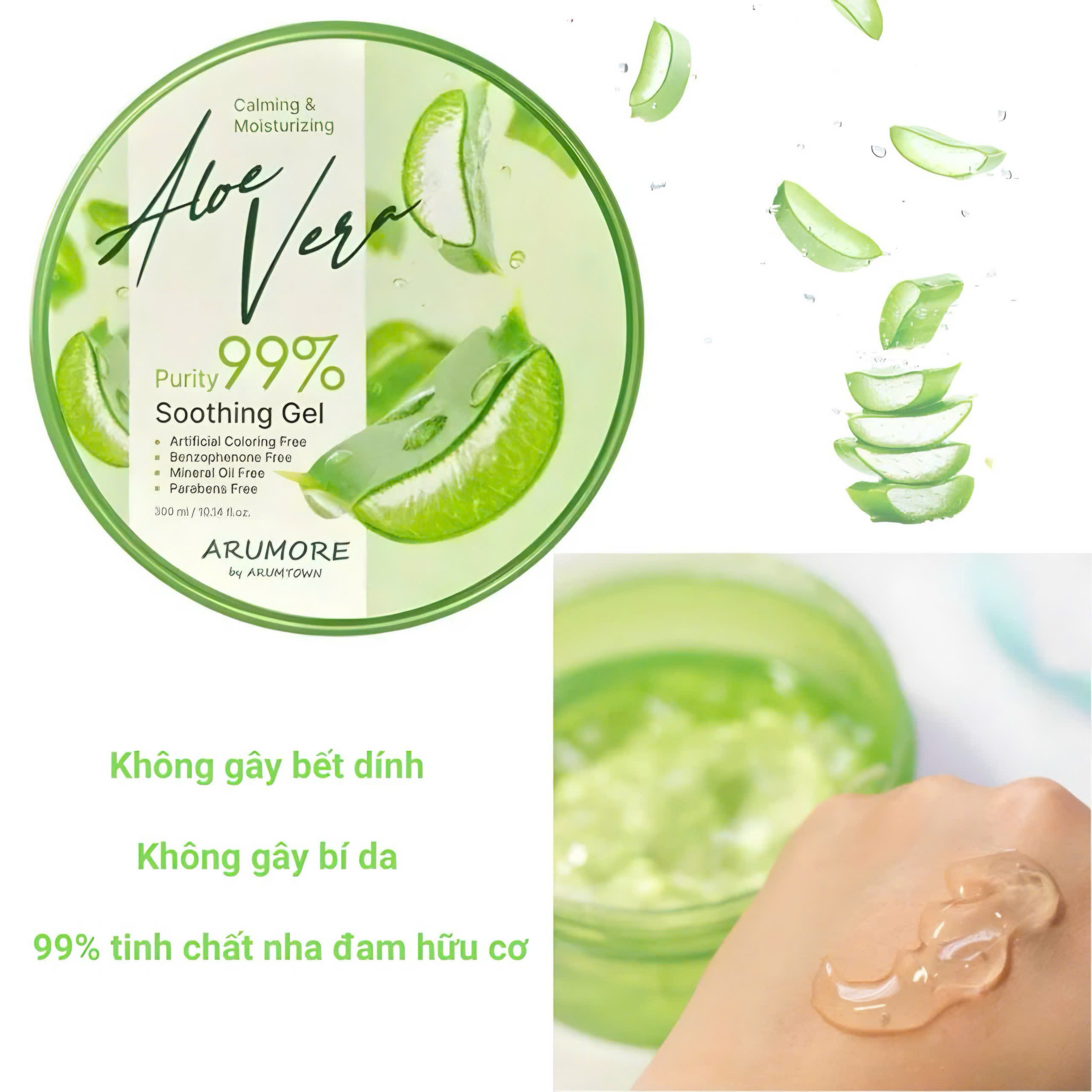 Gel dưỡng ẩm, làm dịu da, phục hồi đa năng nha đam Aloe Vera Arumore 300ml – Hàn Quốc
