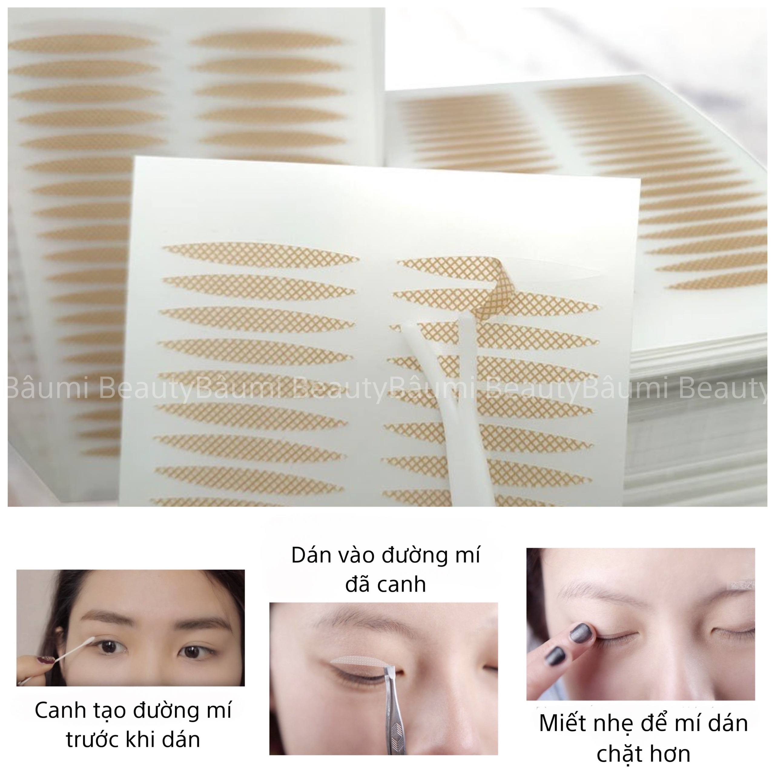 ** Nếu trang điểm thì dán lên mí sau khi trang điểm.