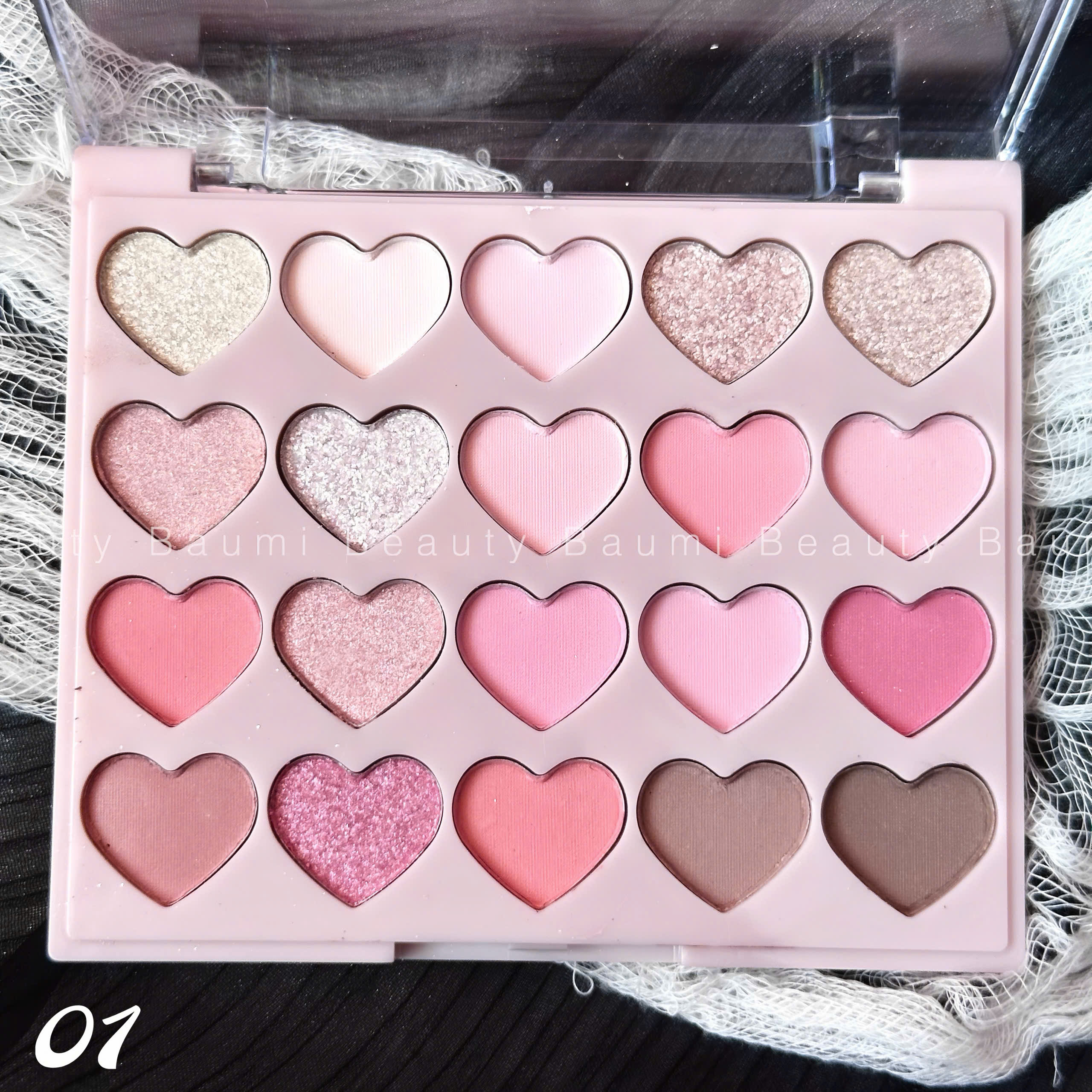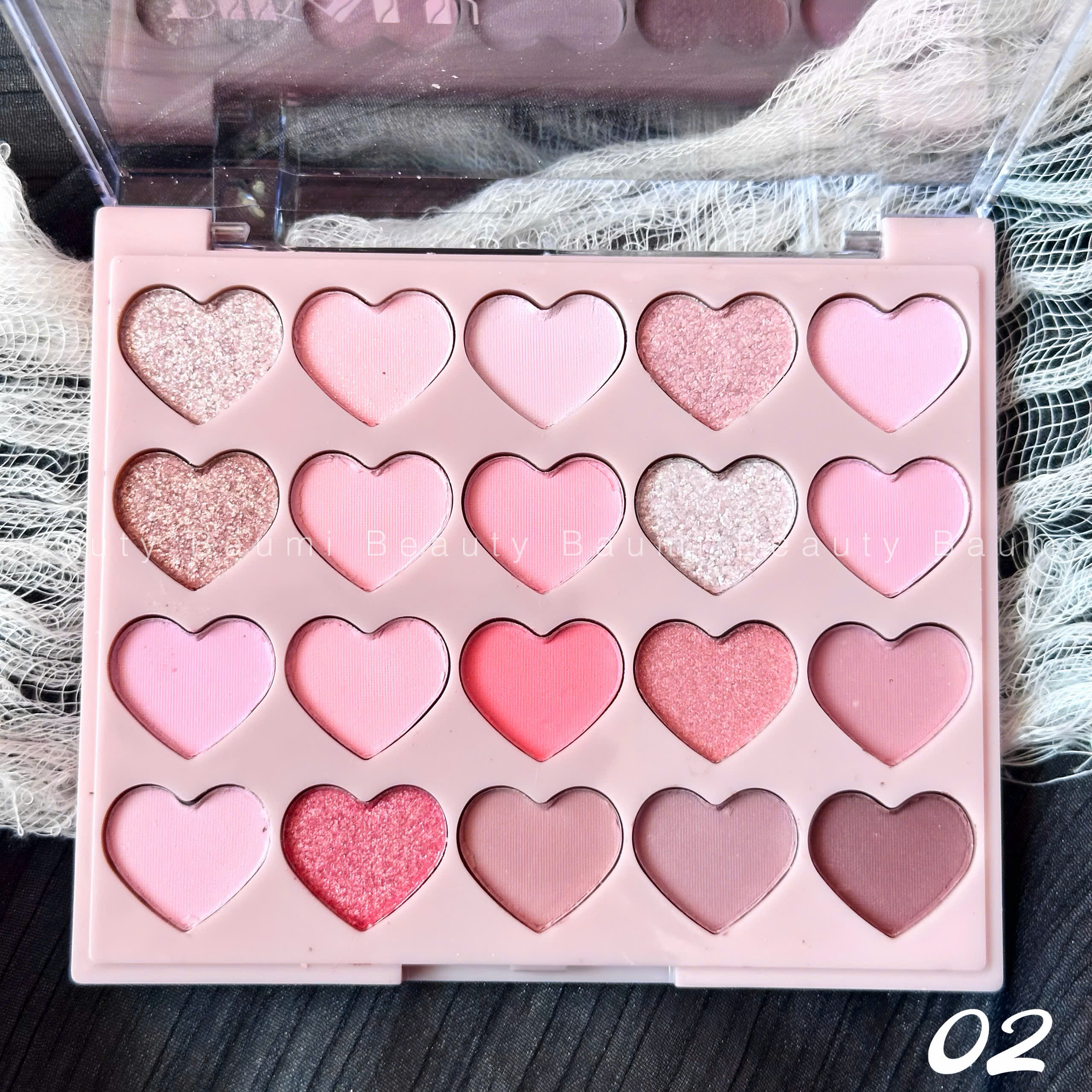 🌟 Với thiết kế hình trái tim xinh xắn và 20 ô màu đa dạng gồm lì & nhũ, dễ phối từ makeup hằng ngày đến đi tiệc. Chất phấn mịn, dễ tán, lên màu khá rõ, bám màu ổn, không bị bột. Tone màu hài hòa, dễ dùng cho người mới tập makeup, nhỏ gọn – tiện mang theo.