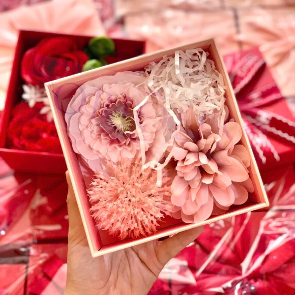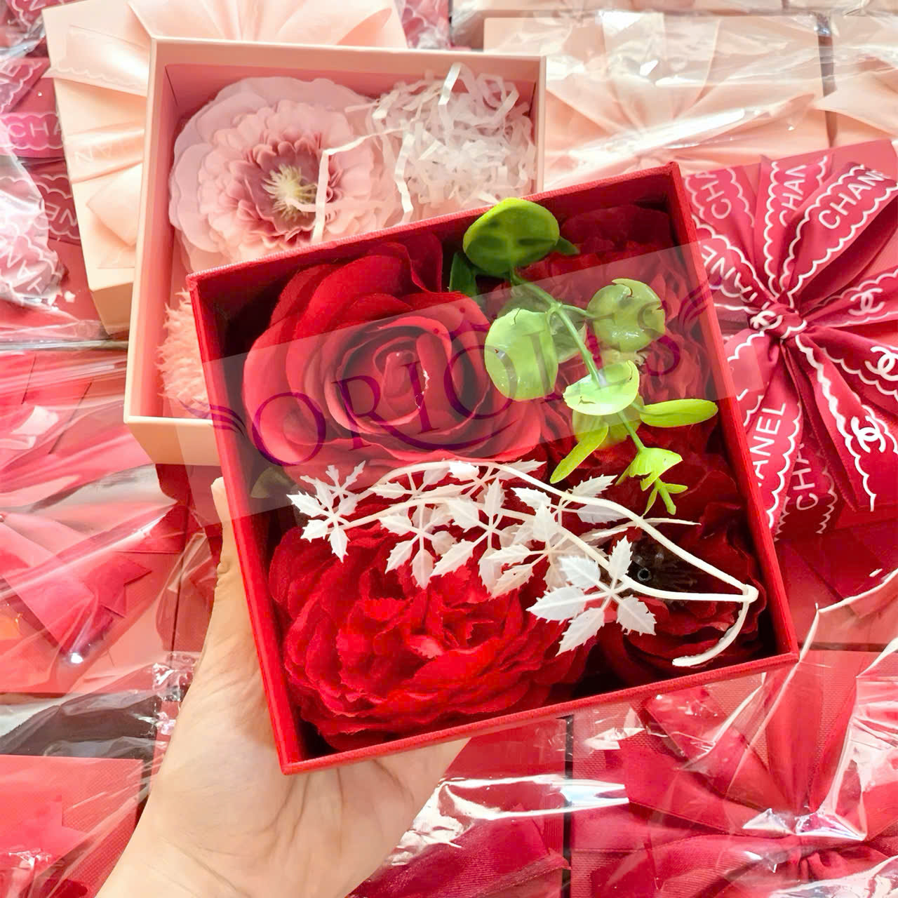 ( Không kèm mỹ phẩm ) Hộp đựng quà trang trí hoa lụa xinh xắn, sang trọng, siêu tiện lợi 14cm HS02