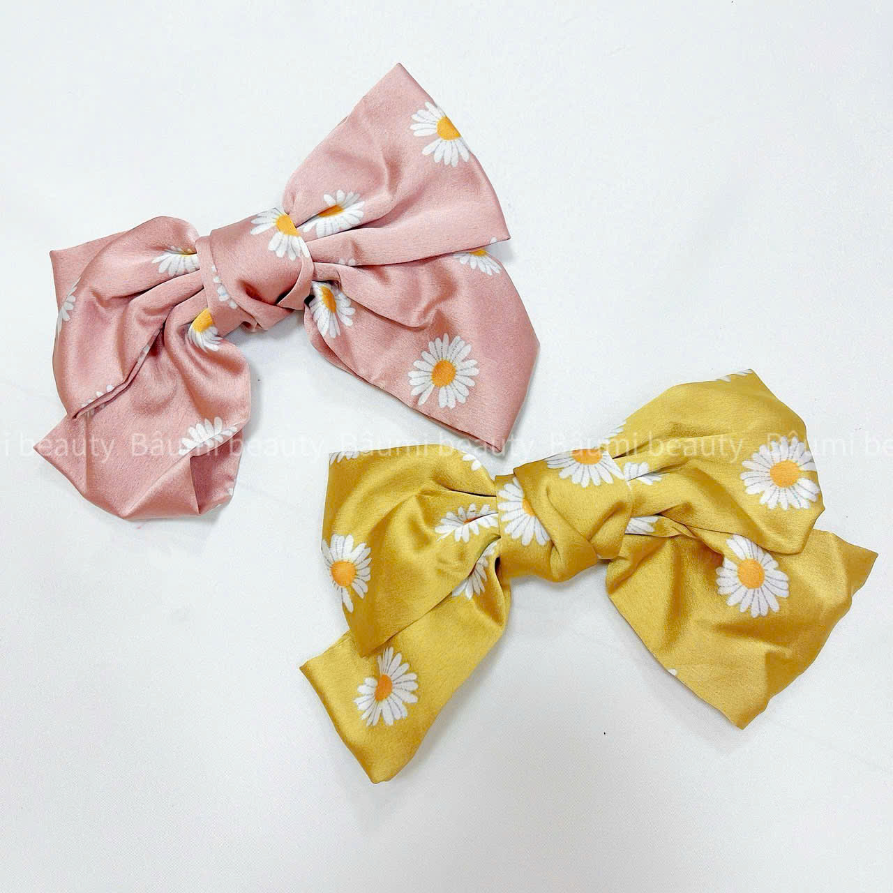 ( Lẻ 1 cái ) Kẹp / Cột tóc nơ lụa mềm mại bản to phong cách nhẹ nhàng, dịu dàng nhiều màu sắc / họa tiết xinh xắn N01