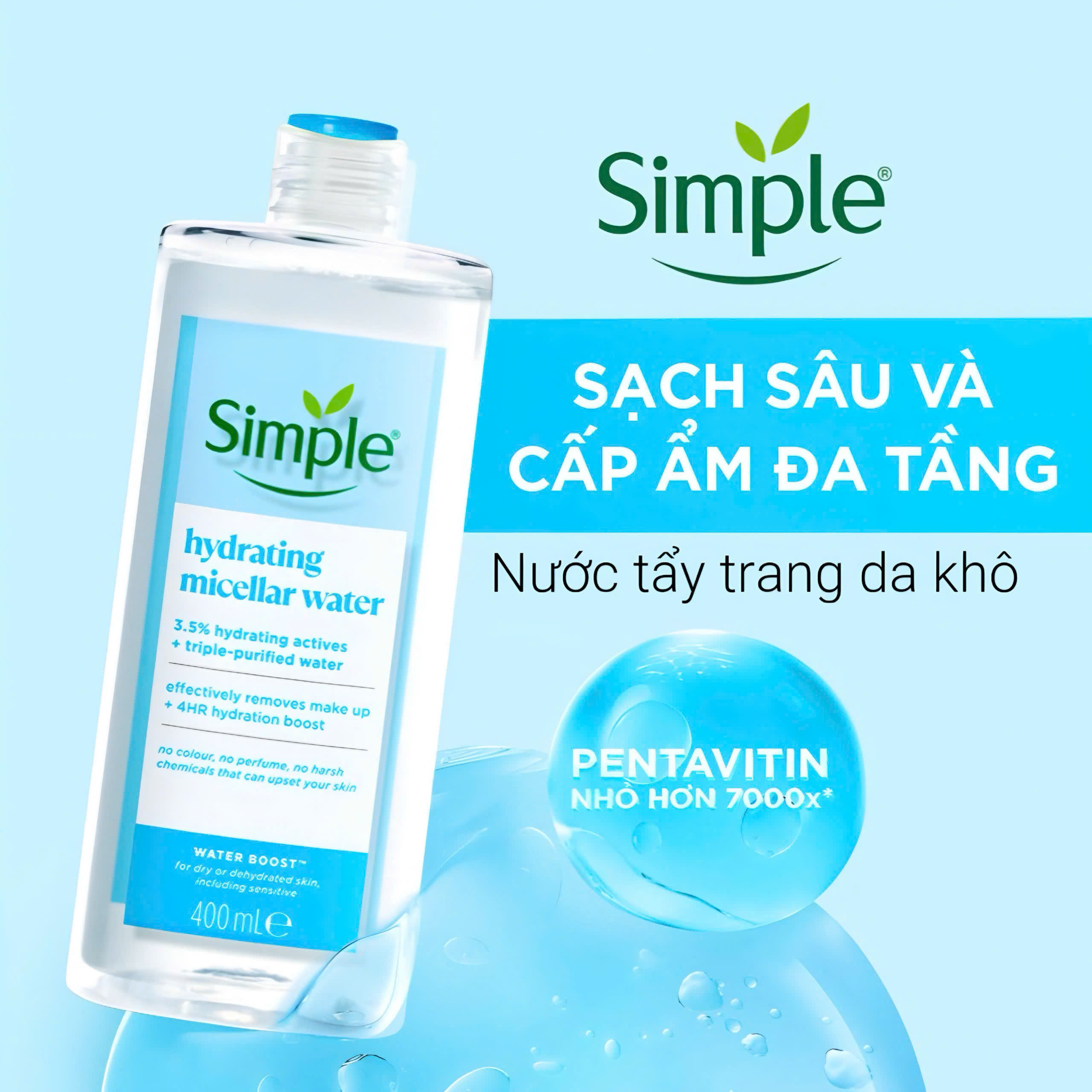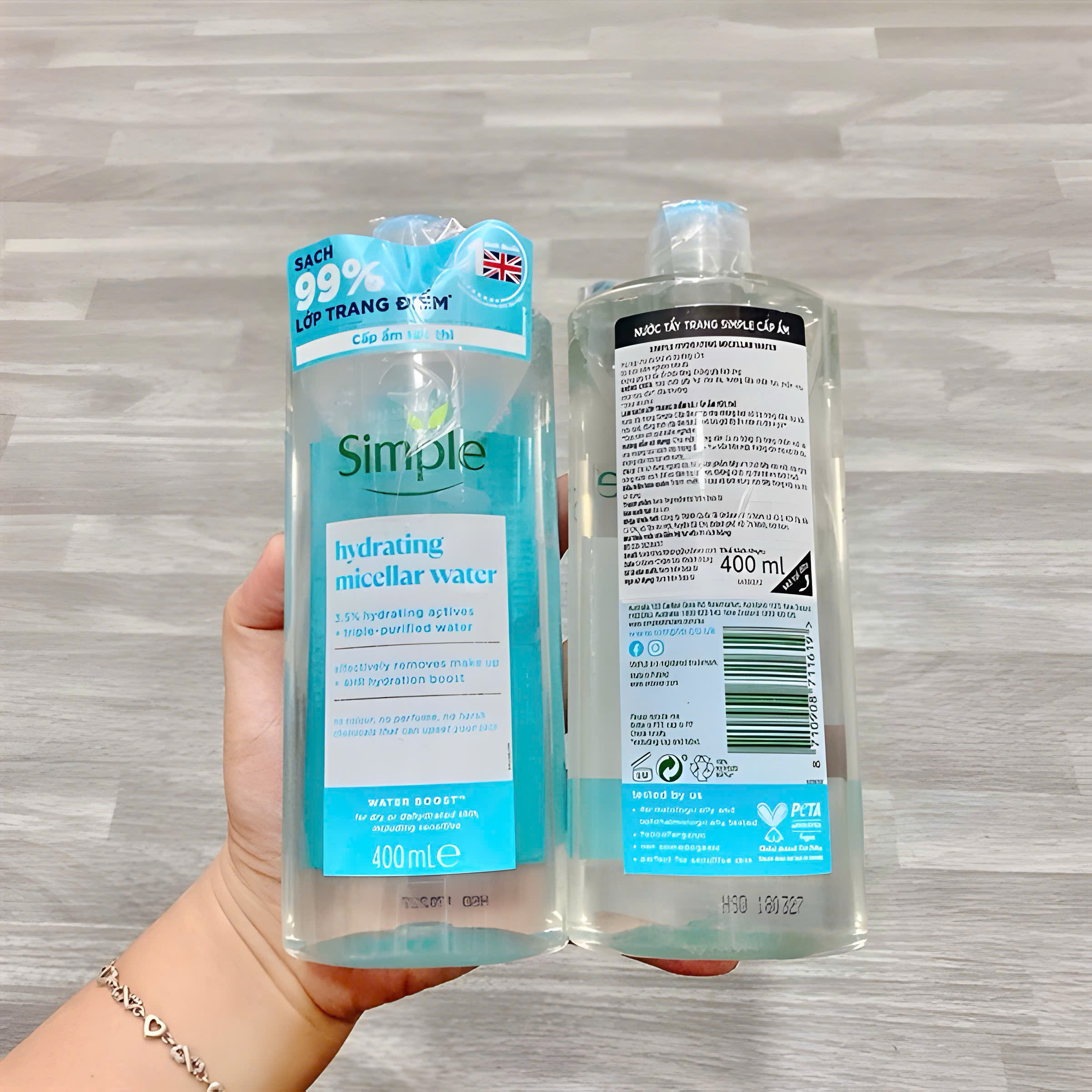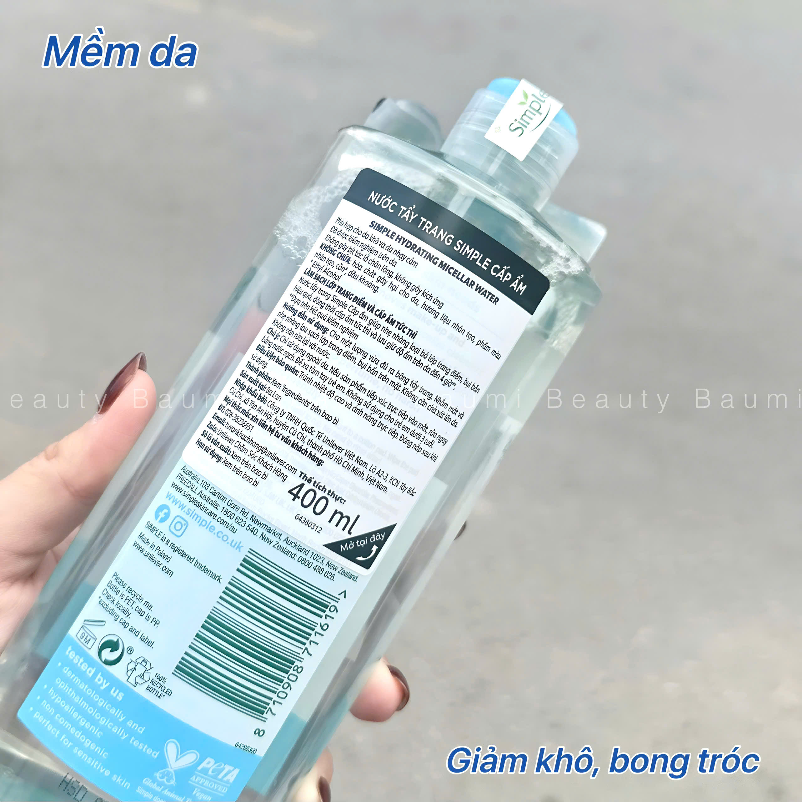 Đánh giá Nước tẩy trang cấp ẩm, lành tính, an toàn cho da khô, nhạy cảm Simple Hydrating Micellar Water 400ml – Anh