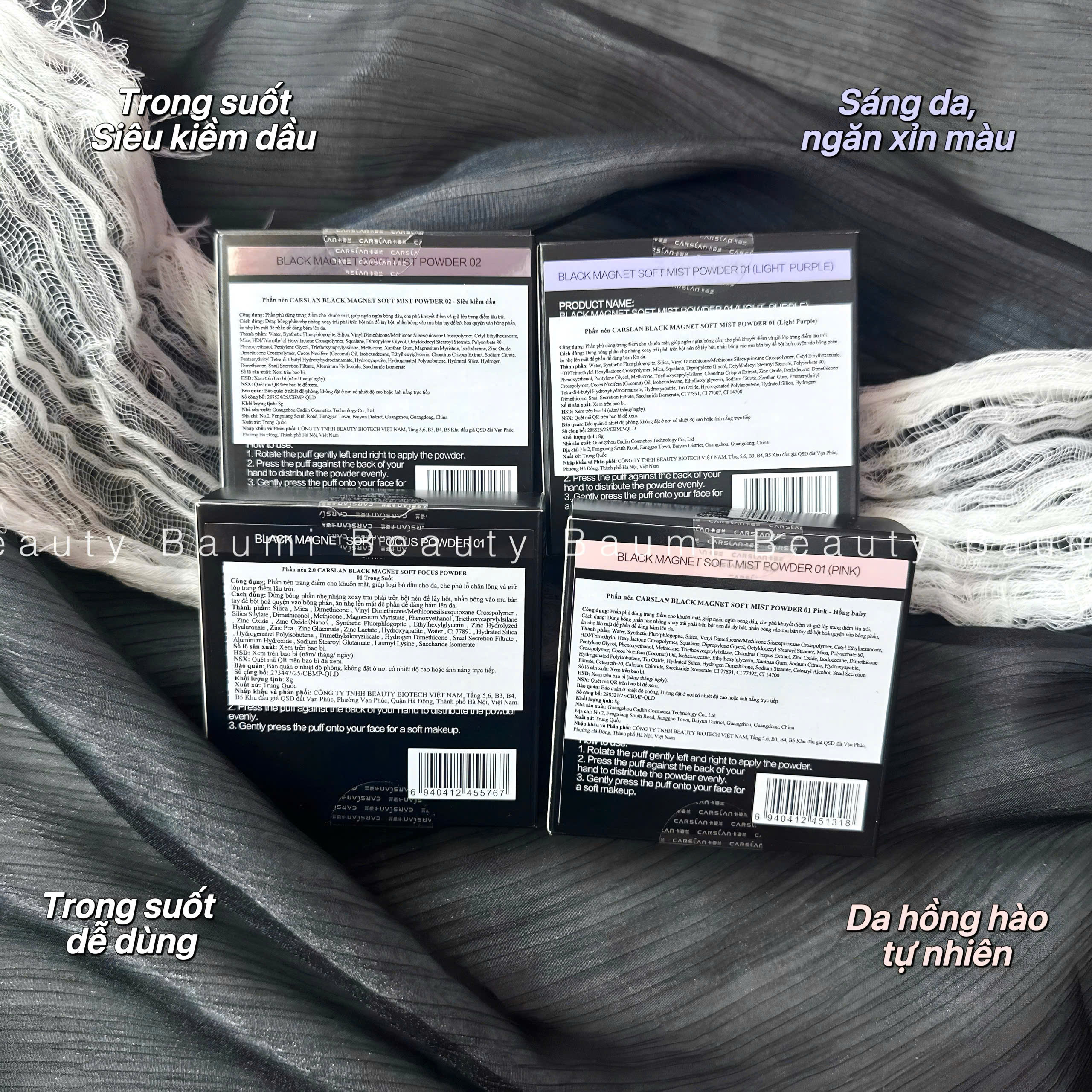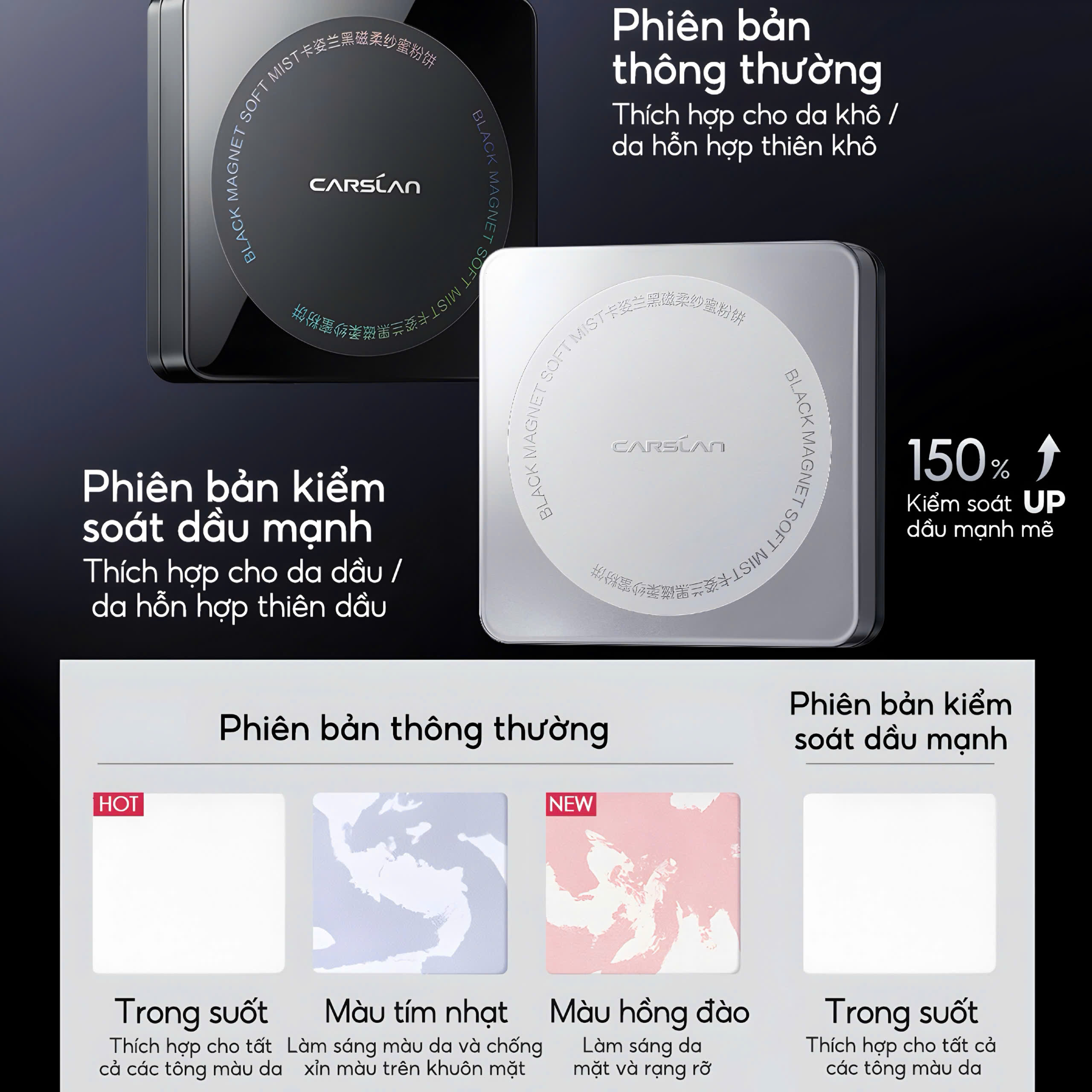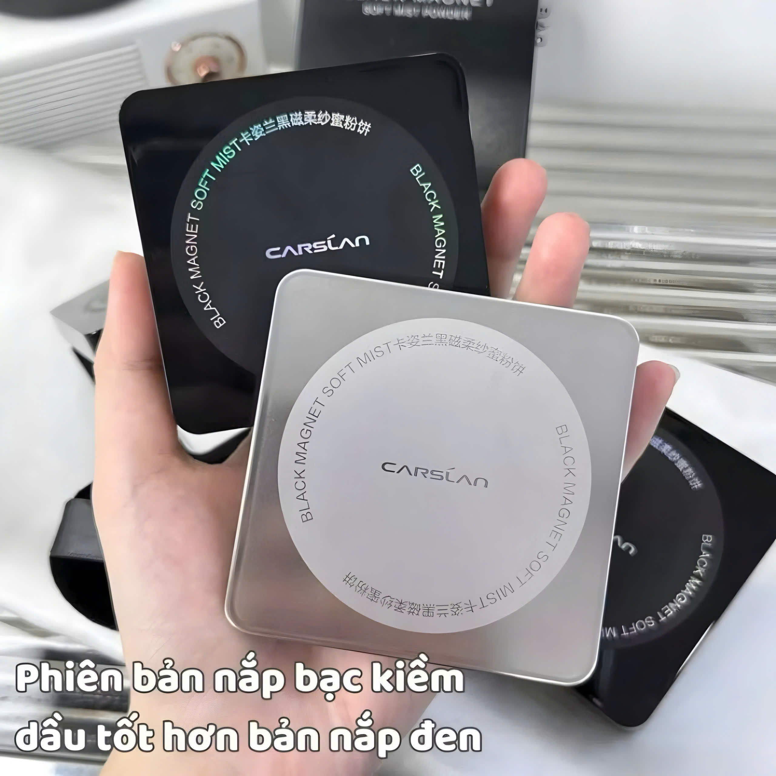 Đánh giá Phấn phủ nén mịn lì, kiềm dầu, đều màu da Carshlan Black Magnet Soft Mist Powder 8g #02 Nắp Bạc Siêu kiềm dầu