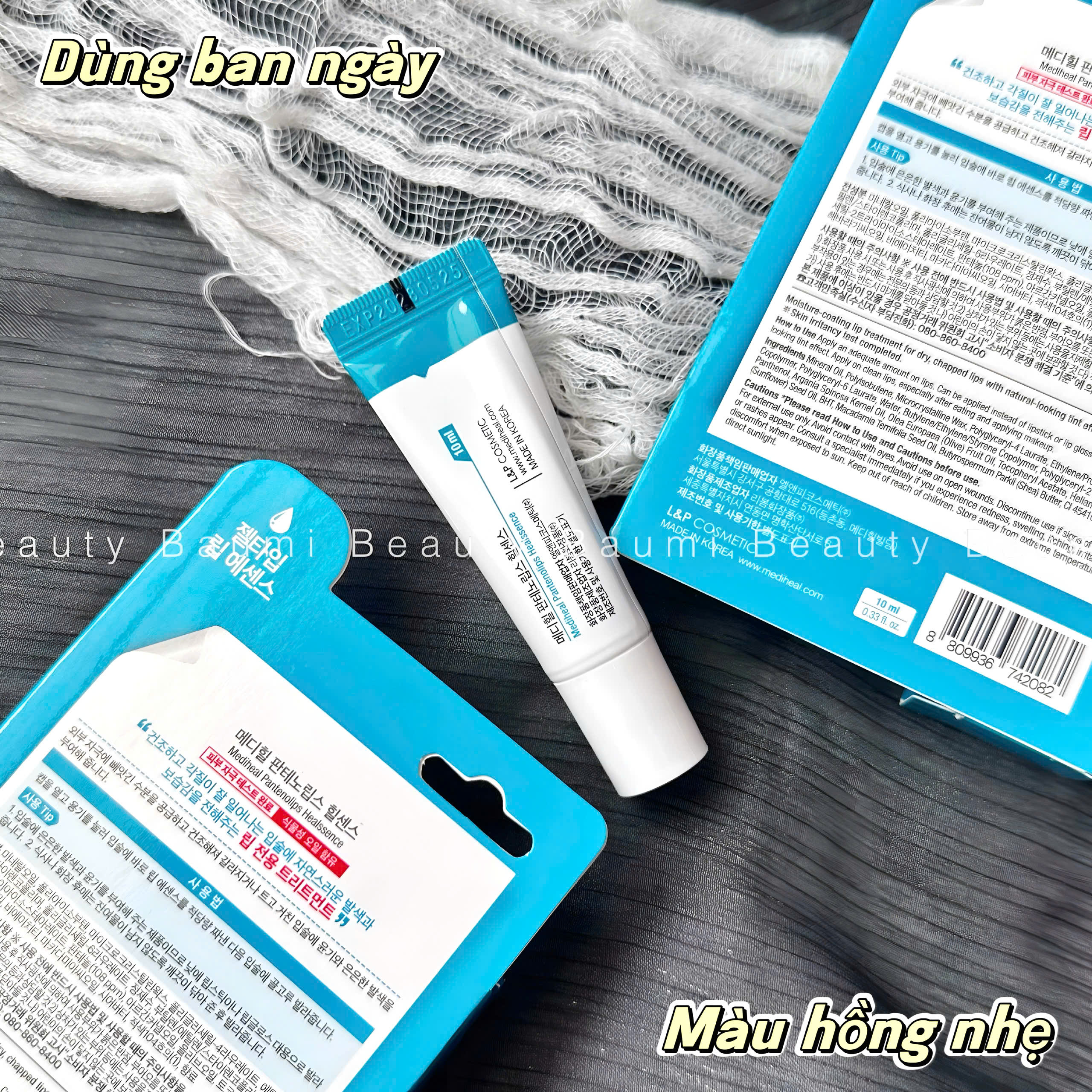 – Tuýp màu xanh [Healssence]: dưỡng thâm, lên màu môi hồng tự nhiên ,cấp ẩm môi cả ngày, môi bợt hoặc hay bong tróc thì dùng em này ok lắm. Dùng ban ngày