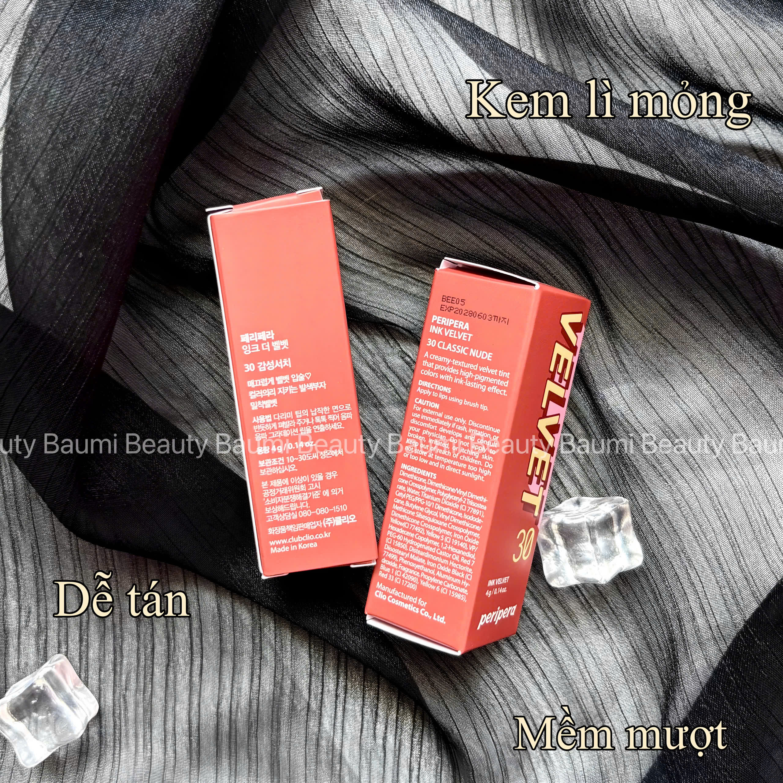 Son kem mịn lì Peripera Ink Velvet Nude 4g – Hàn Quốc #30 Classic nude