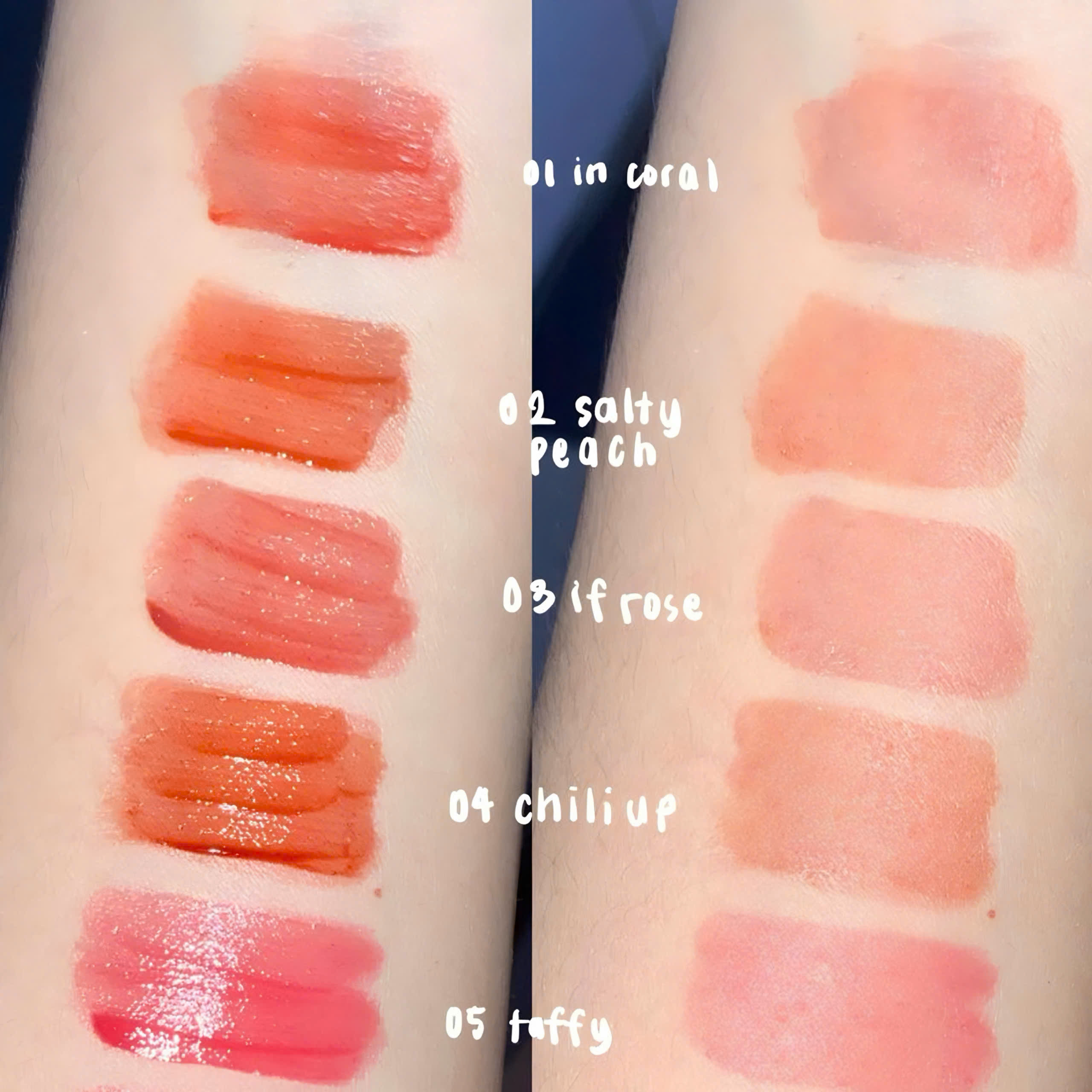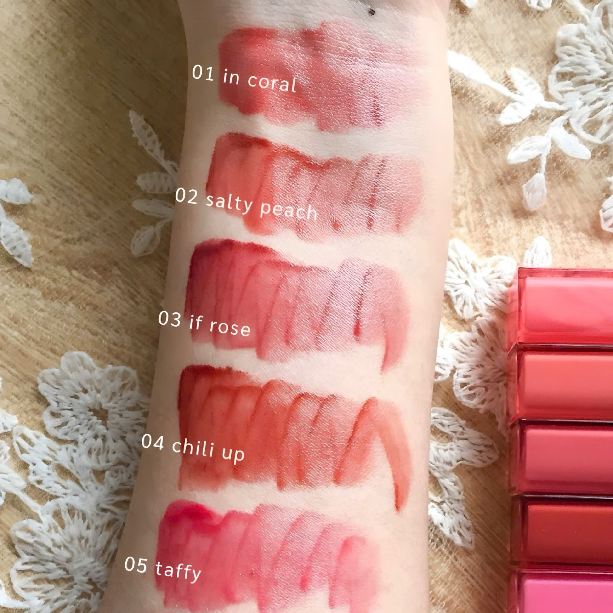 – Lớp bóng Dewy nhẹ nhàng và trong trẻo ngay từ lần quẹt đầu tiên, có thể thao tác đánh nhiều lớp, son vẫn duy trì độ trong trẻo, với một màu son đánh 2 lớp, 3 lớp để tạo ra những phong cách khác nhau nhé.
