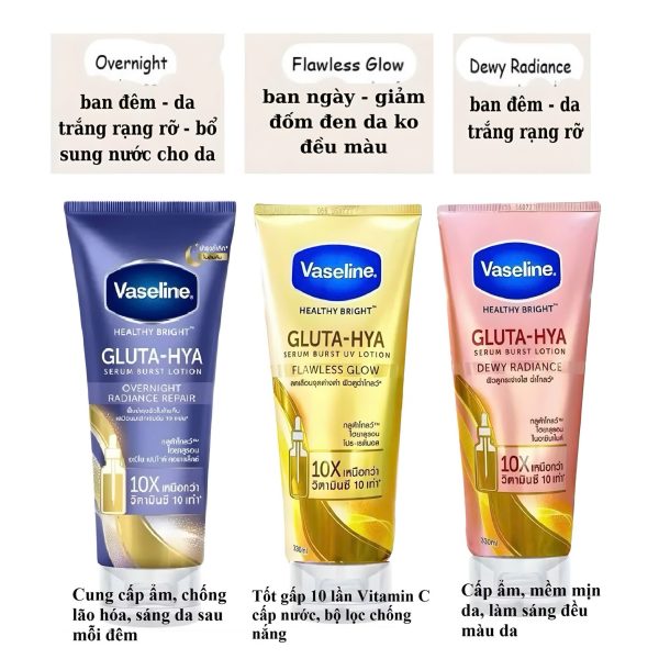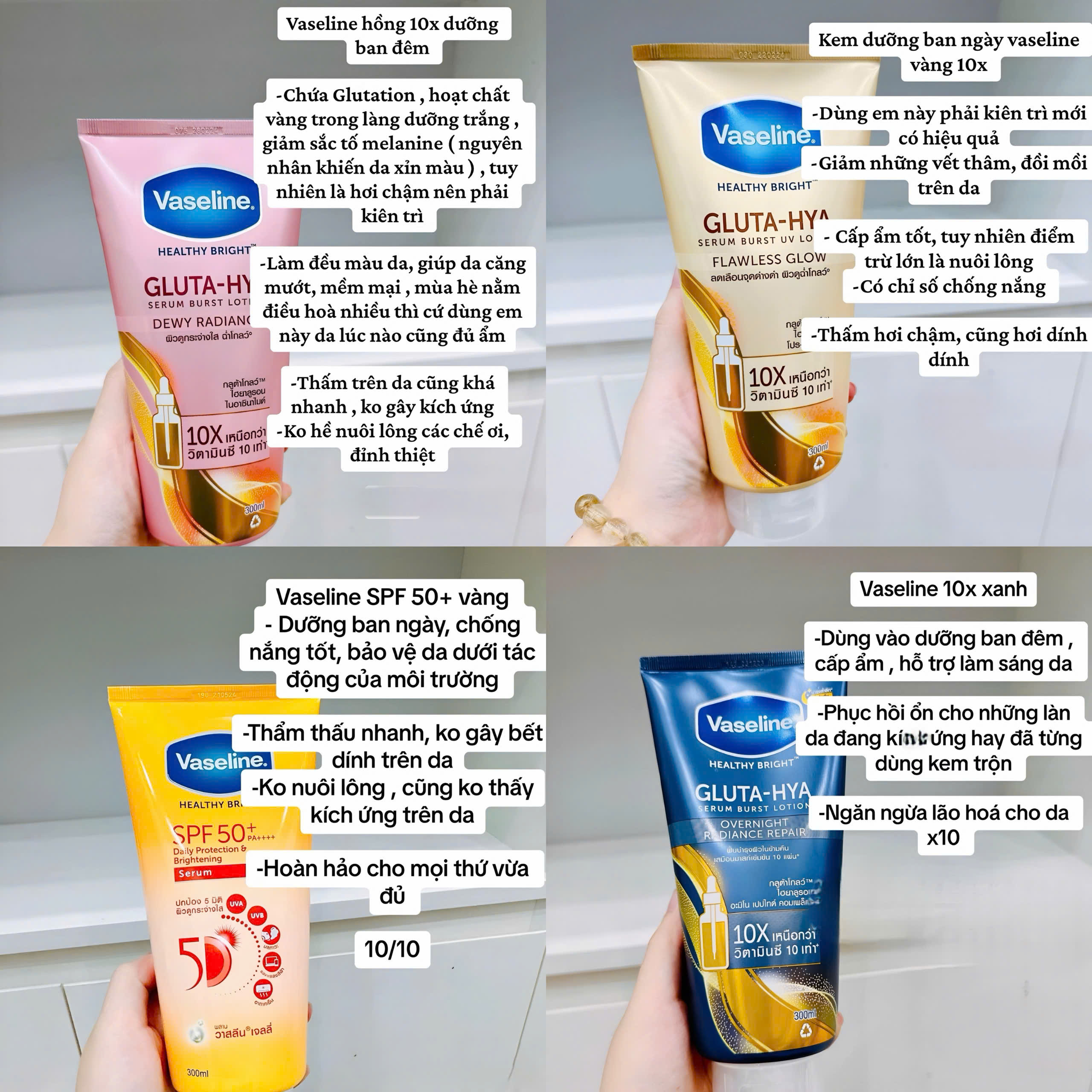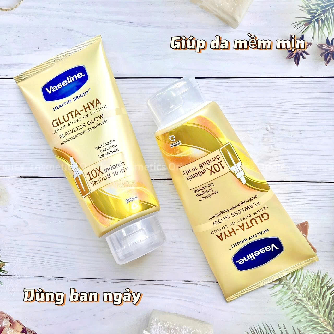 Sữa Dưỡng thể body 10X Vaseline Gluta – Hya Serum Burst UV Lotion Flawless Glow 300ml – xách tay Thái Lan #vàng, dùng ban ngày, sáng da, khoá ẩm