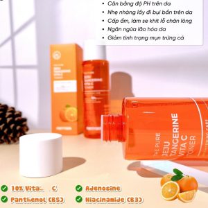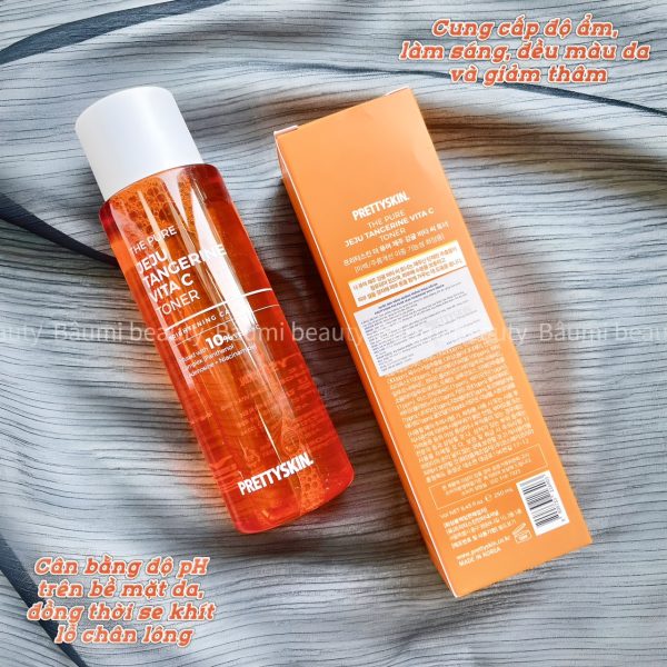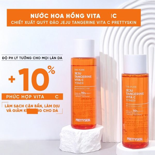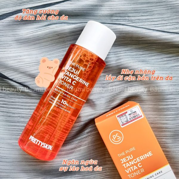 Toner/ Nước hoa hồng dưỡng trắng da, giảm nhăn, mờ thâm sạm, đều màu The Pure Jeju Tangerine Vita C Prettyskin 250ml – Hàn Quốc