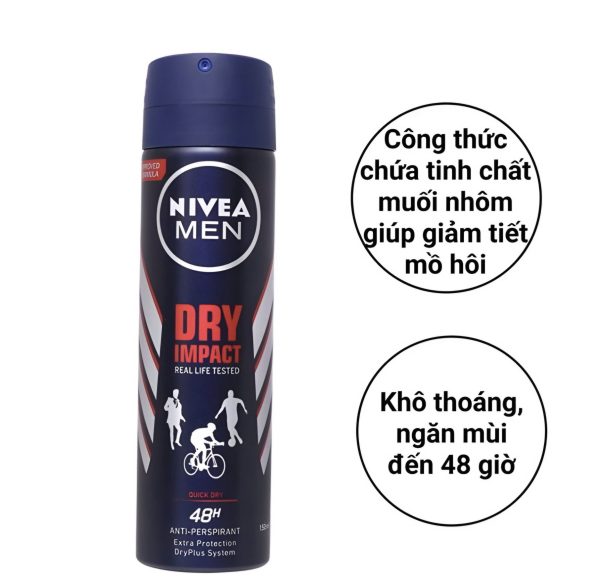 Xịt khử mùi nam Nivea Men khô thoáng 150ml – Bản Thái #Dry Ampact